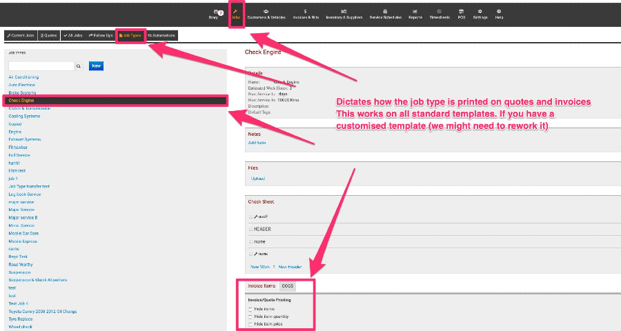 Note that if you do have a custom template on your MechanicDesk account let us know we will have a look at it.