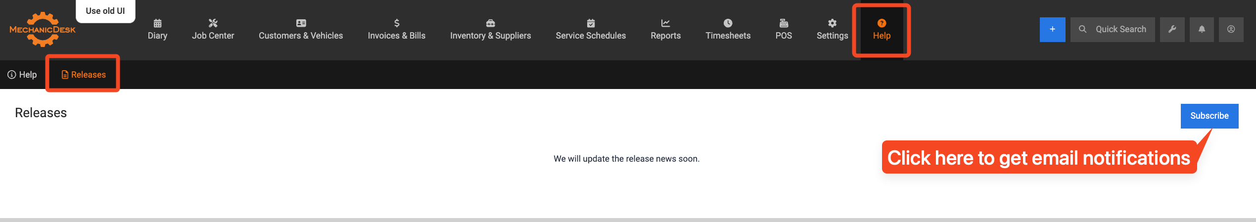 With the new User Interface now available for testing — and not too far off from being ready for full deployment — we’re excited to introduce a new Releases section in MechanicDesk.